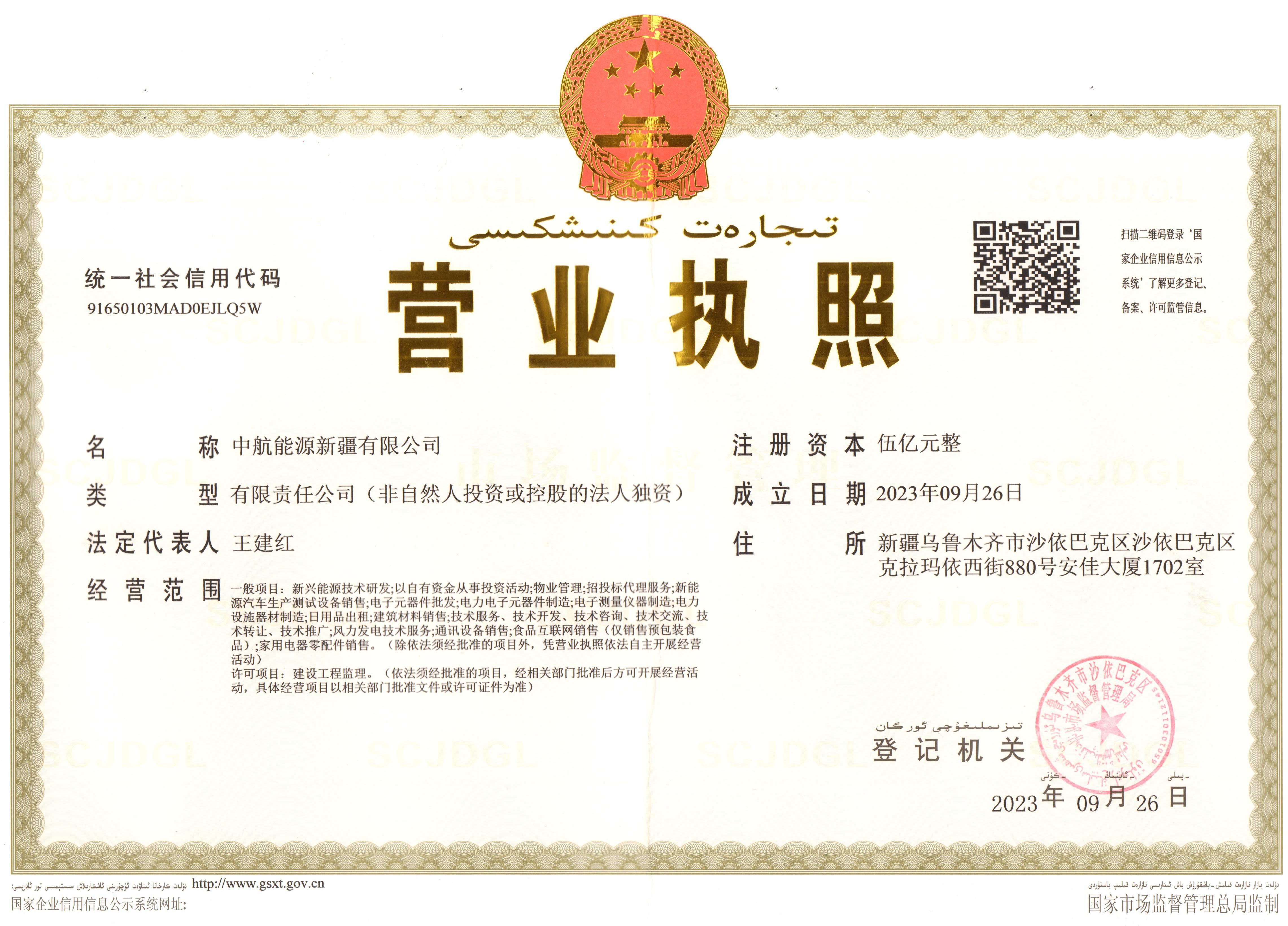 中航能源新疆有限公司成立于2023年09月26日,是新利在线注册响应国家“一带一路”倡议,构建专业化合作,推动能源技术发展和管理经验的交流平台。公司积极参与并支持国家关于新疆地区能源开发的政策措施,为推动区域绿色发展、促进社会经济可持续增长做出积极贡献。
