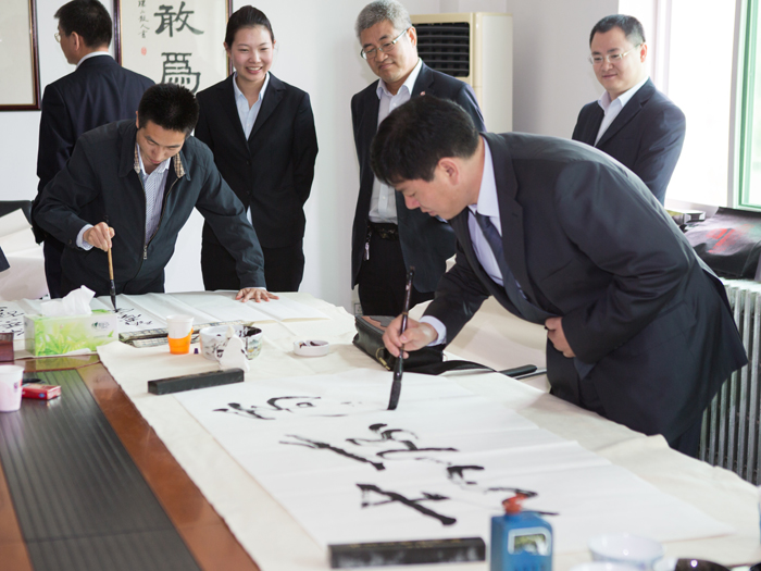 为弘扬传统文化,丰富员工业余生活,5月6日上午,新利在线注册有限公司举办了首届书画艺术学习交流活动。本次活动邀请了中国书法家协会会员孟云飞博士、中国书法家协会理事张铜彦先生、中国书法家协会编辑出版委员会副主任王荣生教授、人民艺术家协会理事于瑛先生等国内知名书画大师,各位书画大师在活动现场进行了艺术创作表演,挥毫泼墨,交流技艺,为新利在线注册有限公司留下了数十副墨宝,还对部分员工的书画作品进行了悉心指导。公司员工现场欣赏了书画大师的艺术创作,并聆听了有关书画艺术鉴赏知识的介绍,部分员工还在活动现场进行创作,听取书画大师的讲解示范和点评。
