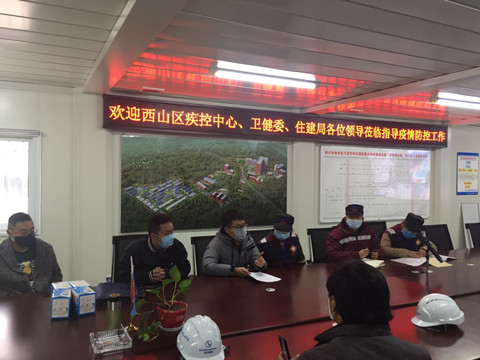 西山区疾控中心、卫健委、住建局领导在详细察看项目疫情防控方案、防护物资储备、生产生活区域消毒、员工排查台账等情况后,对该项目的防疫工作给予了高度评价并向坚守岗位的建设者表示感谢。三部门领导同时指出,当前疫情防控形势严峻,要坚持疫情防控与复工复产两手抓,做到严格防控、安全生产、紧张有序、标准不降。西山区各级领导会想方设法解决大家的燃眉之急,希望大家积极做好自身防护,配合做好各项防控工作,平安度过疫情,齐心协力打赢疫情防控阻击战。