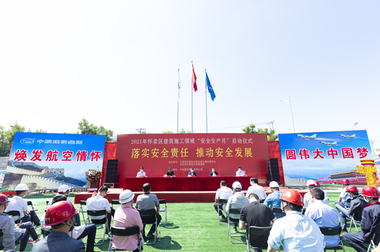 为深入贯彻全国第20个安全生产月“落实安全责任,推动安全发展”主题要求,提升建筑施工安全生产意识,强化安全预防措施,防范遏制重特大事故发生,6月1日上午,怀柔区建筑施工领域“安全生产月”活动正式启动,仪式在集团公司承建的陈各庄集体土地租赁住房项目现场举行。怀柔区住建委、区应急管理局相关领导,怀柔区建筑施工领域部分项目总承包单位项目经理,监理、承建单位负责人近百人参加此次活动。北京市长城伟业投资开发有限公司副总经理郑仲杰,新利在线注册常务副总经理陈清、副总经理高阳出席仪式。